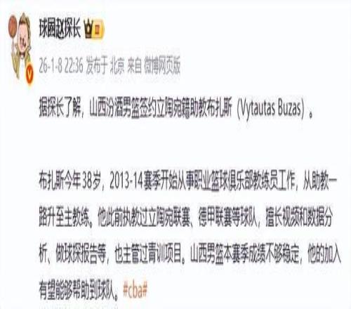 既然外援都做了调整,那么接下来就要考虑教练组了。潘江的实力也就那样了,只能想办法补充其他人了。这不,根据球圈赵探长的报道,山西男篮引入了立陶宛籍助教布扎斯(Vytautas Buzas)。